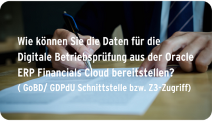 Sie sind auf der Suche nach einem kompetent Oracle Partner der Sie mit fachlicher Expertise in Deutschland bzw. europaweit unterstützt, die rechtlichen Herausforderung zu meistern und zugleich alles aus Ihrer Oracle ERP Cloud herauszuholen?